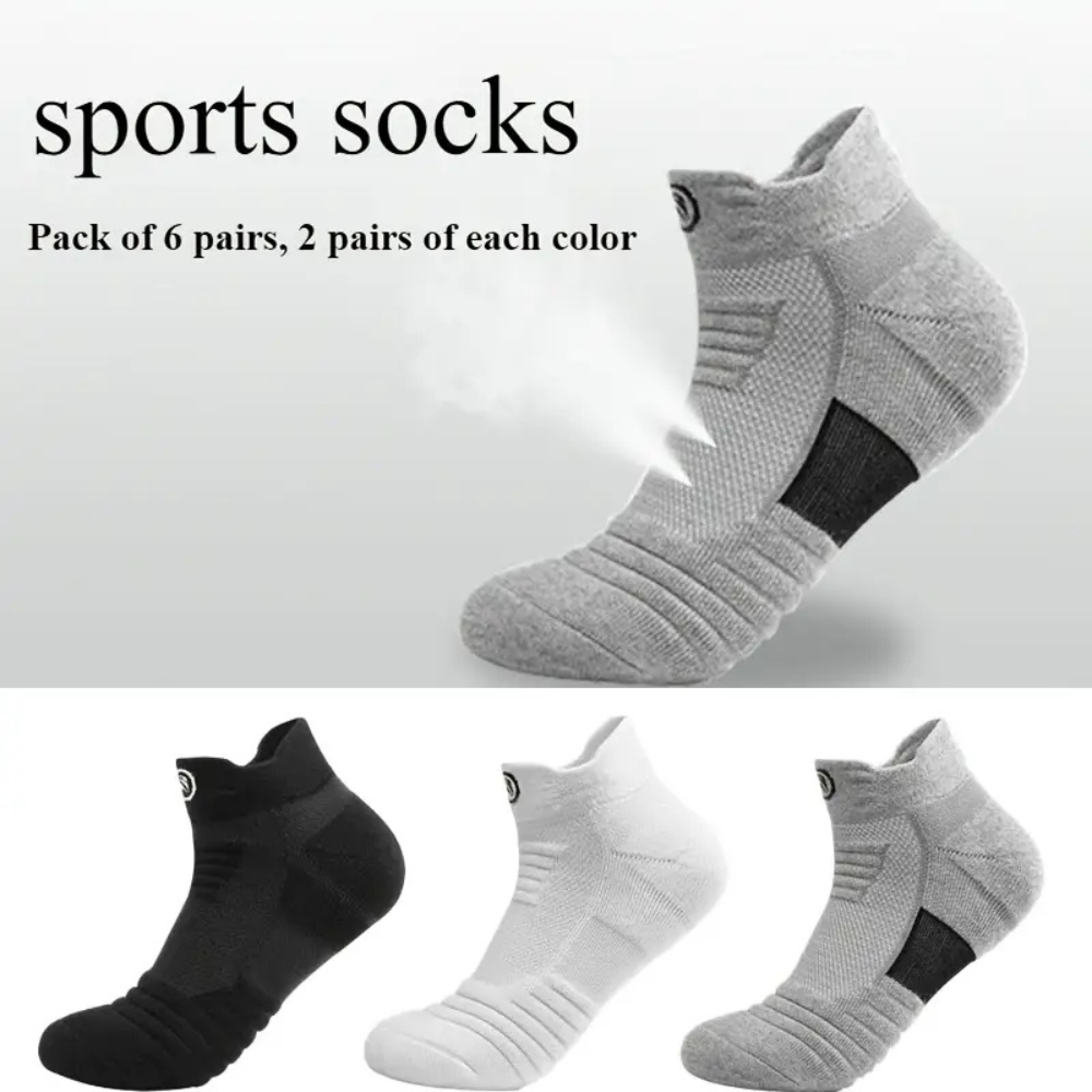 6 أزواج من الجوارب الرياضية مع شبكة لا تسبب الرطوبة، تصميم مسامي، مناسب للجري، تتميز بقاع غير قابل للانزلاق ونمط أنبوبي قصير مقاوم للعرق