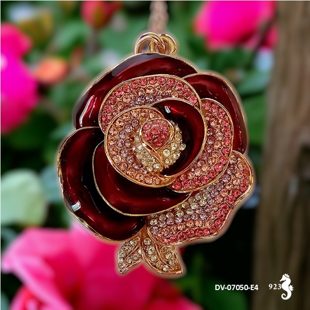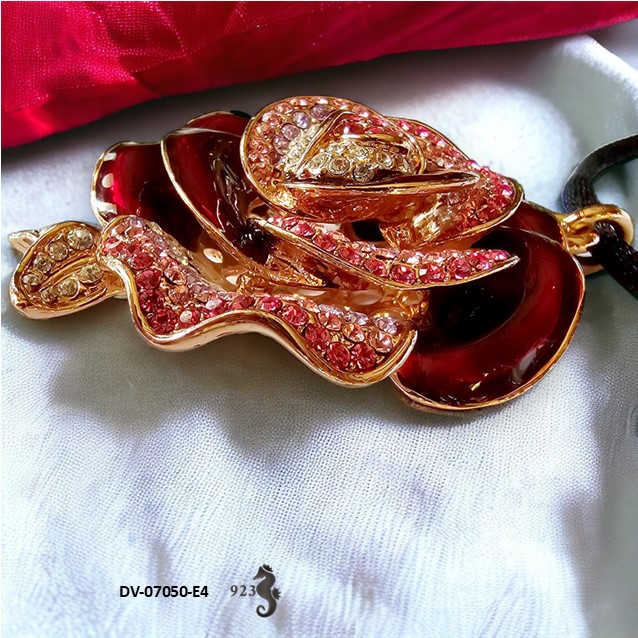 | قلادة الورد الجوري المرصع بالزيركون و ألوان المينى الامع باللون الأحمر والوردي مطلي بالذهب |