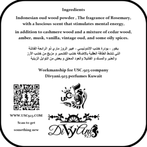 بخور , بودرة خشب الإندونيسي , عبير الروز ماري ذو الرائحة الفاتنة التي تنشط الطاقة العقلية بالإضافة خشب الكشمير و مزيج من خشب الأرز والعنبر والمسك و الفانيلا والعود المعتق و بعض من التوابل الزيتية
