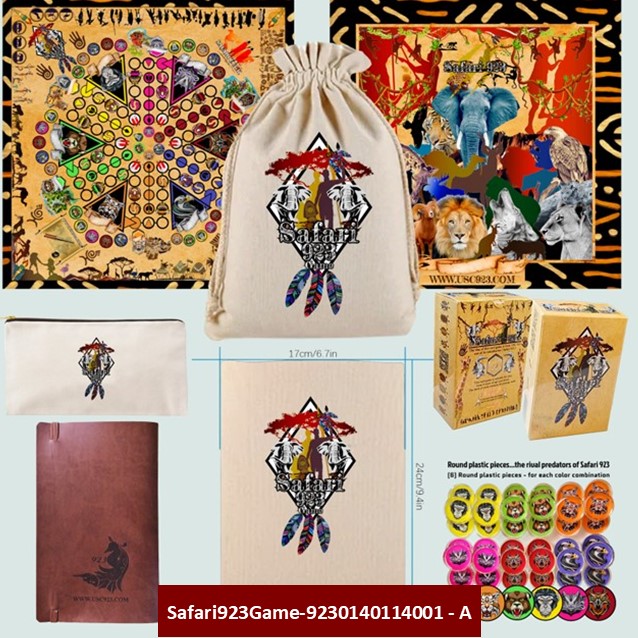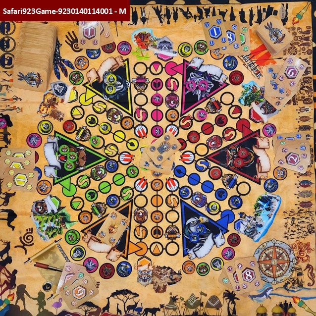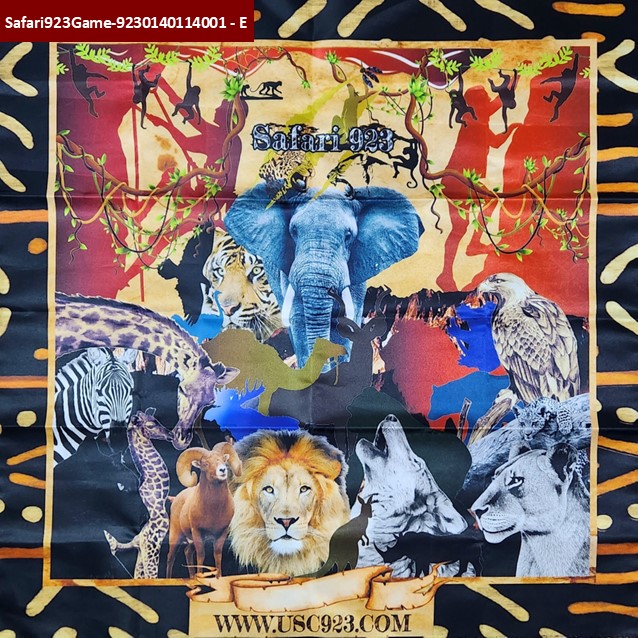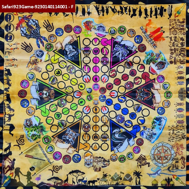 الجانب الأمامي من صورة قماش اللعب (الملعب) الذي يتم لعبه مع أوراق لعب Safari 923 (الفصل الأول) ويتم لعب الجانب الخلفي من صورة اللوحة (الحقل) بقطع بلاستيكية دائرية (Queens) وأوراق لعب السفاري (بموجب القانون الثاني)