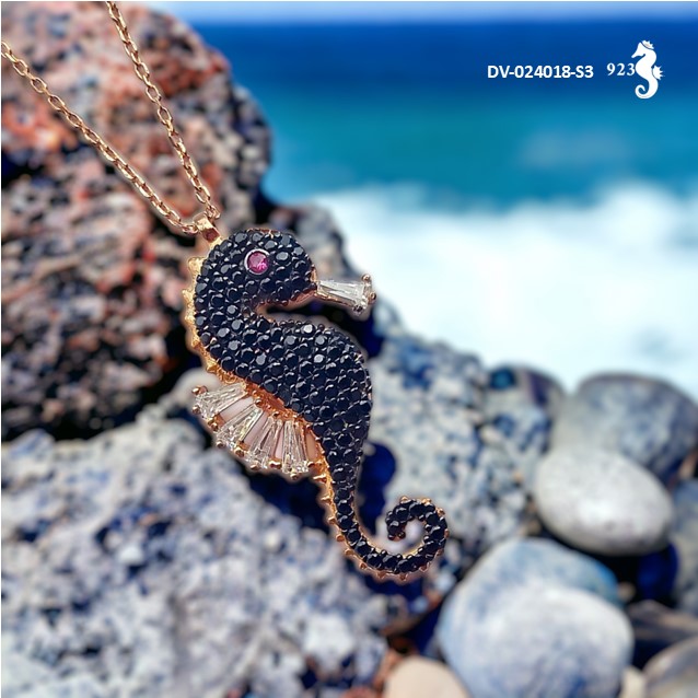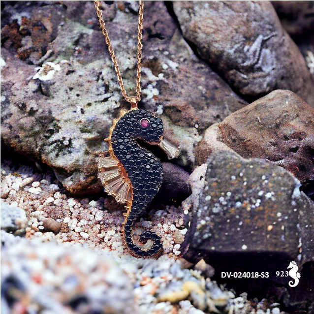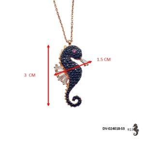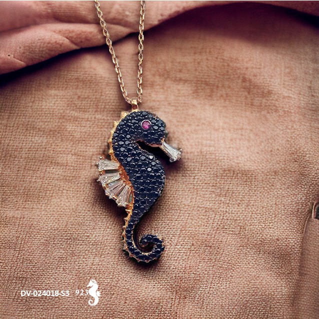 فضة – عيار 925- مجسم حصان البحر مرصع بأحجار الزيركونالملونة لون الأسود