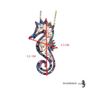 فضة – عيار 925- مجسم حصان البحر مرصع بأحجار الزيركونا مستطيلة و مجموعة من الأحجار الملونة