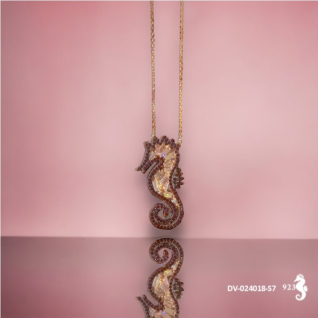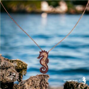 | فضة – عيار 925- مجسم حصان البحر مرصع بحجر الزيركون وحجر الاسود |