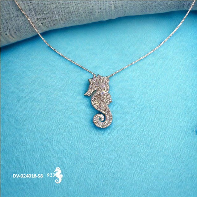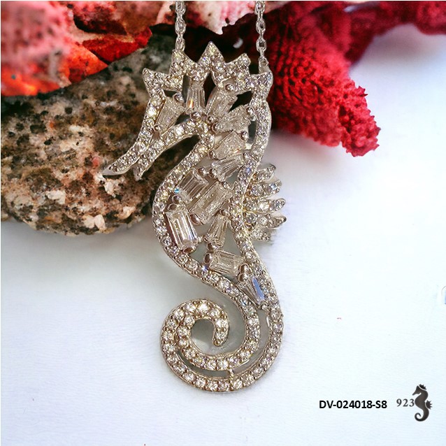 فضة – عيار 925- مجسم حصان البحر مرصع بحجر الزيركون مستطيل الشكل